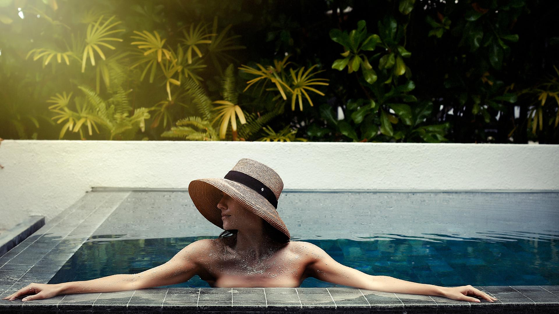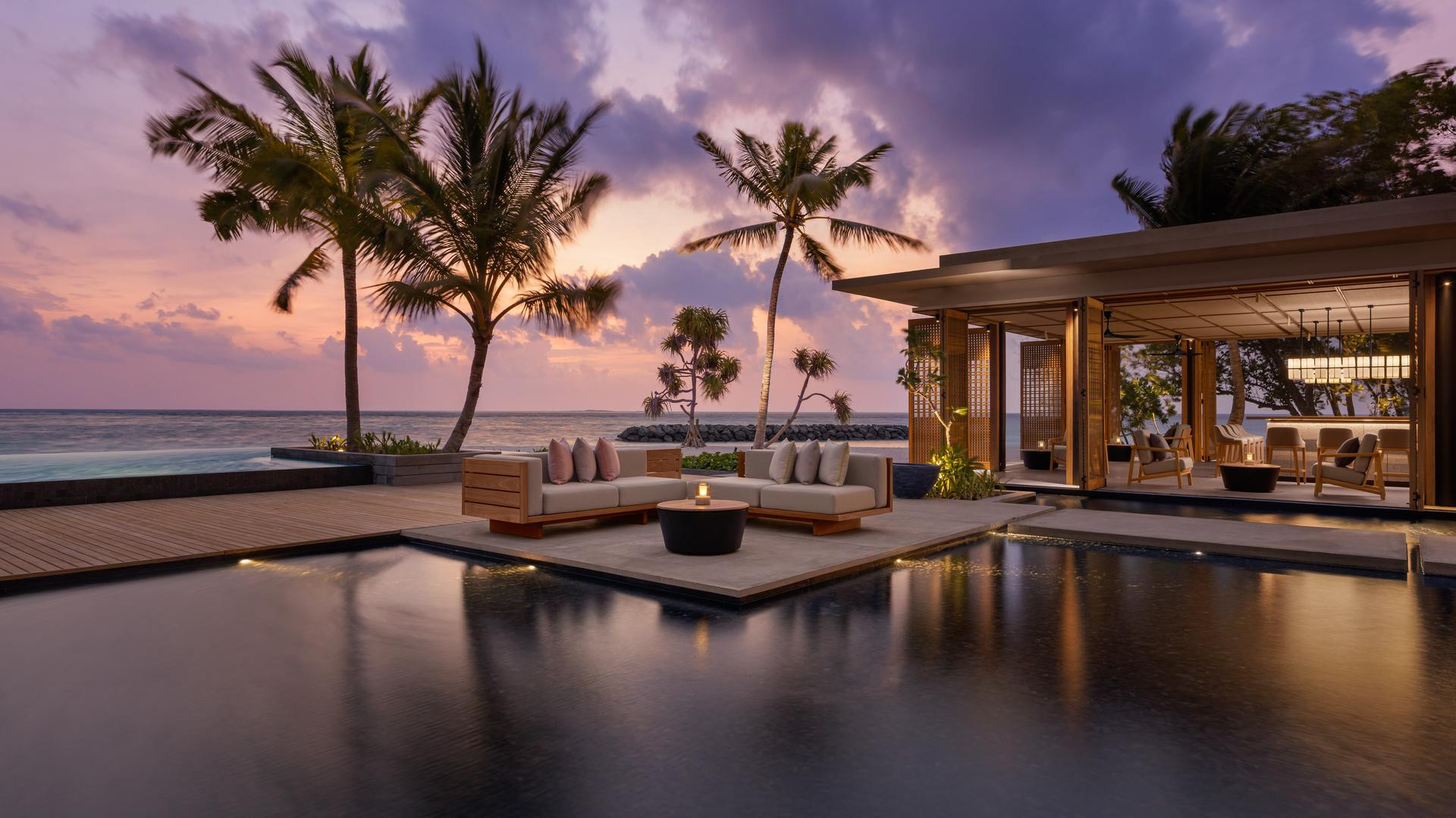 Sunset Beach pool villa: >200 nm, naplemente felőli, tengerre néző, 1 külön hálószoba, külön nappali, zuhanyzó, fürdőkád, kültéri zuhanyzó, hajszárító, minibár térítés ellenében, széf, TV, WiFi, kávé/tea, terasz (bútorozott), közvetlen strandkapcsolat , saját medence, inasszolgálat