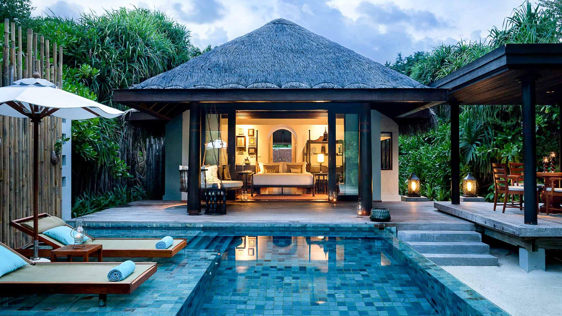 Beach Pool Villa kb 258 nm (kb. 158 nm lakóterület): Közvetlenül a tengerparton Napozóterasz és medence (kb. 3 x 6 méter). A trópusi növényzetre néző és részben a tengerre. Villa, nemdohányzó szoba, tenger felőli, kb. 258 m², összesen szobaszám ebben a szobatípusban: 1, elrendezése: kombinált nappali/hálószoba, 1 franciaágy, 1 kanapé, babaágy: ingyenes, klíma: ingyenes, egyedileg szabályozható, mennyezeti ventilátor, íróasztal, kávé/teafőző, minibár: térítés ellenében, telefon, Internet: WLAN/WiFi: ingyenes, TV: német csatornák, kábel TV, DVD lejátszó, CD lejátszó, szobaszerviz: térítés ellenében, komornyik szolgáltatás: térítésmentes, takarítás: térítés ellenében, zuhany, kültéri zuhanyzó, fürdőkád a szobában, WC, fürdőköpeny: térítés ellenében, papucs: térítésmentes, hajszárító, terasz: nyugágyakkal, ülőgarnitúrával, saját medencével