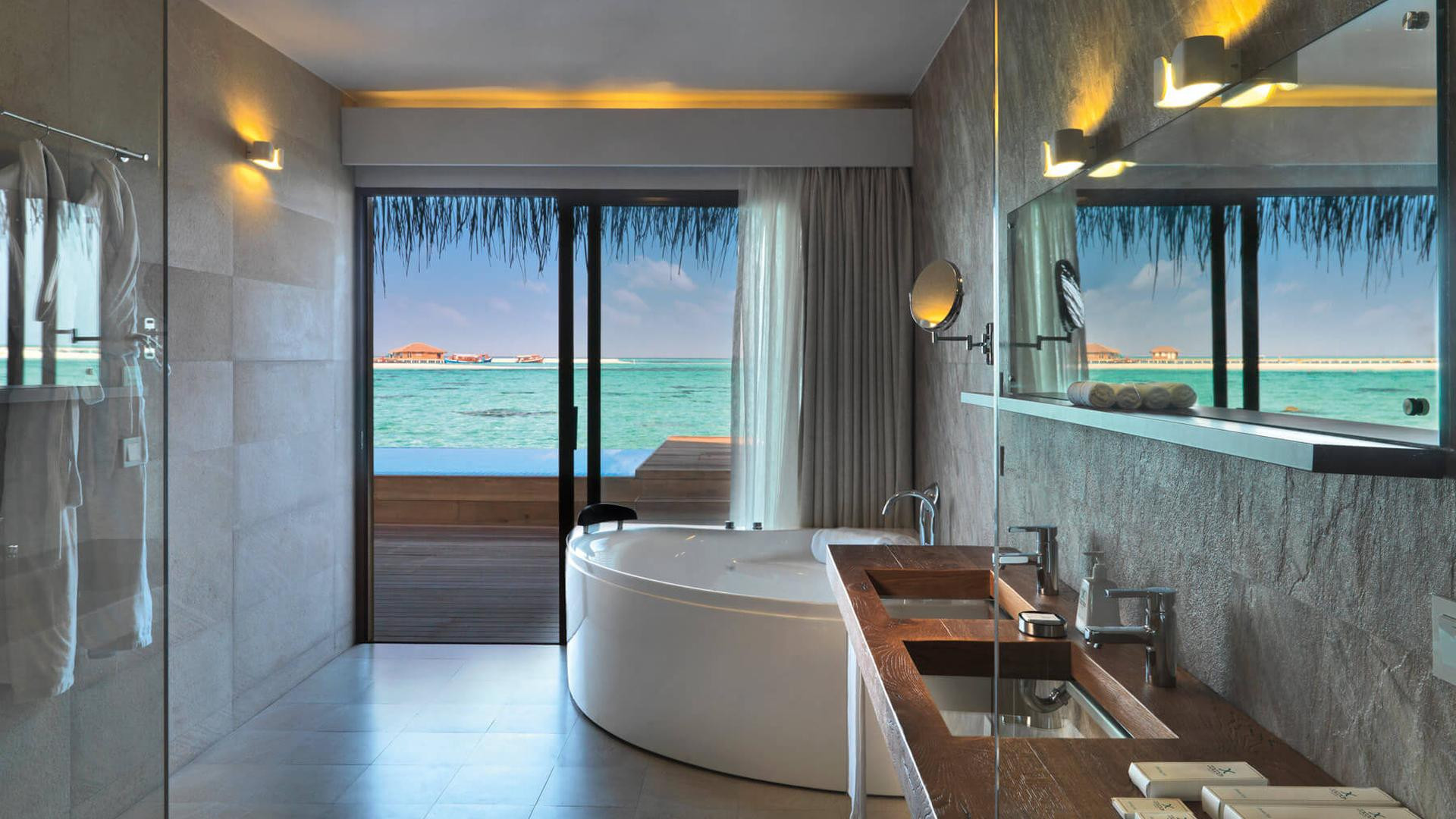 Lagúna villa 61-70 nm, napkelte felőli, vízi bungaló (cölöpökön a lagúnán), kilátással a tengerre, zuhanyzó, wc, hajszárító, légkondicionáló, ventilátor, minibár térítés ellenében, széf, TV, WiFi, vízforraló, kávé/tea, terasz (bútorozott), közvetlen tengeri kijárat. bungaló, nemdohányzó szoba, tenger felőli, lagúna felőli, tengerre néző, lagúnára néző, kb. 70 m², összesen szobaszám ebben a szobatípusban: 1, elrendezése a következő: kombinált nappali/hálószoba, 1 king méretű ágy, 1 kinyitható kanapé, légkondicionáló: ingyenes, egyénileg szabályozható, hideg, padló: laminált, széf: ingyenes, mennyezeti ventilátor, kanapé, kávéfőző, kávé/teafőző, étkezőasztal, minibár: térítés ellenében, üdítők: térítés ellenében, all inclusive ellátással, víz: Díj nélkül, alkoholos italok: térítés ellenében, harapnivalók: térítés ellenében, minibár feltöltése: naponta, telefon, Internet: WLAN/WiFi: térítésmentes, televízió : síkképernyős, hálószobában, műholdas TV, szobaszerviz: napi 24 óra, térítés ellenében, takarítás: naponta, ingyenes, külön zuhanyzó, fürdőkád, pezsgőfürdő, WC, fürdőköpeny: ingyenes, papucs: ingyenes töltés, hajszárító, sminktükör, terasz nyugágyakkal