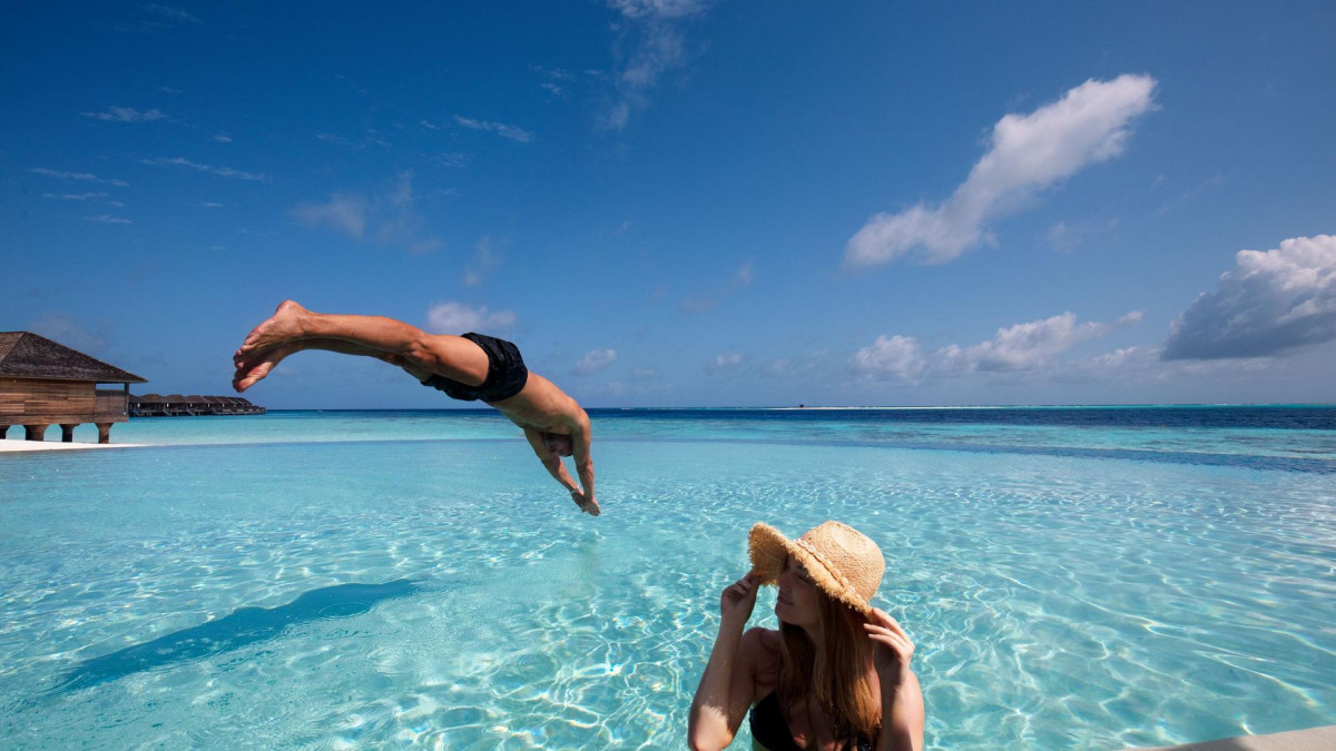 A fényűző üdülőhely egy gyönyörű lagúnával és egy fantasztikus házzátonyával nyűgöz le. Ha szeretnél egy cápa szemébe nézni anélkül, hogy vizes lennél: a víz alatti étterem nemcsak ínyenc fogásokat, hanem lenyűgöző kilátást is kínál!