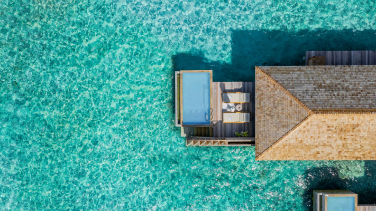 Ocean Pool villa 101-120 nm, vízi bungaló (cölöpökön a lagúnán), kilátással a tengerre, nappali/hálószoba, zuhanyzó, kültéri kád, kültéri zuhanyzó, wc, hajszárító, fapadló, légkondicionálás, ventilátor, minibár térítés ellenében, széf, TV, WiFi, vízforraló, kávéfőző, kávé/tea, terasz (bútorozott), közvetlen kijárat a tengerhez, saját medence