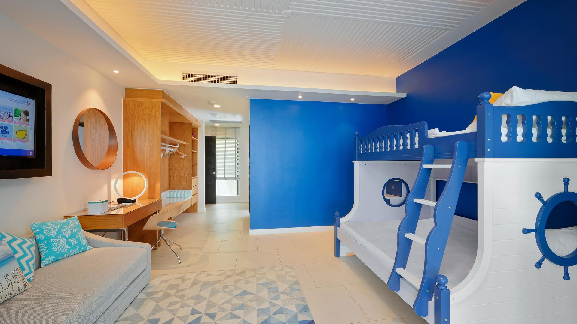 2 hálószobás családi Sky lakosztály 71-80 nm, 2 külön hálószoba, tengerparti elhelyezkedés, 1. emelet, tengerre néző, 2 fürdőszoba, esőzuhany, WC, hajszárító, légkondi, ventilátor, minibár térítés ellenében, széf, TV, vízforraló, kávé/tea, erkély ( berendezett)