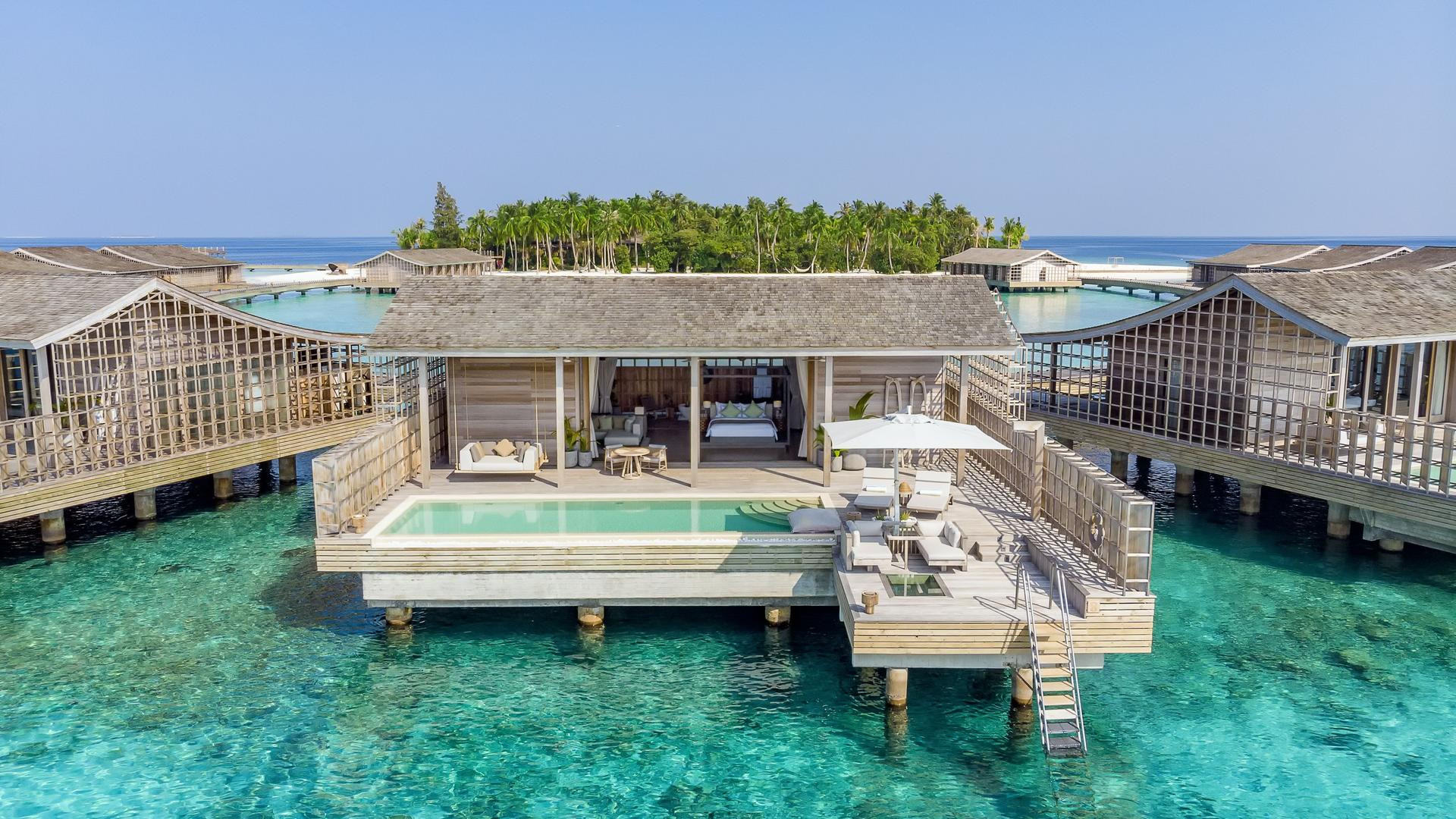 A mindössze 15 rezidencia cölöpökön áll a lagúna felett, és tiszta és lineáris stílus, meleg természetes tónusok, természetes anyagok és a legújabb technológia jellemzi őket. Az építészet a természetes légáramlás szerelmeseit szolgálja ki. A rezidenciákat gyaloghíd köti össze egymással és a kis szigettel, csak méretben és hálószobák számában különböznek egymástól, és páratlan luxust kínálnak, csodálatos kilátással a tengerre. Fürdőszoba káddal és esőzuhannyal, hajszárítóval és fürdőköpennyel, telefonnal, Bang & Olufsen audiorendszerekkel és IPTV-vel (Netflix-et is beleértve), WLAN-nal (ingyenes), minibárral, széffel, légkondicionálóval és kb. 44 nm-es végtelenített medencével tágas egy Deck és rengeteg ülőhely. A türkizkék lagúnák felett félkörívben elhelyezkedő, 15 db letisztult modern stílusú, exkluzív privát villa tervezésénél minden részletet alaposan átgondoltak, a legnagyobb kényelemet, privát életteret, ökológiai tudatosságot szem előtt tartva.