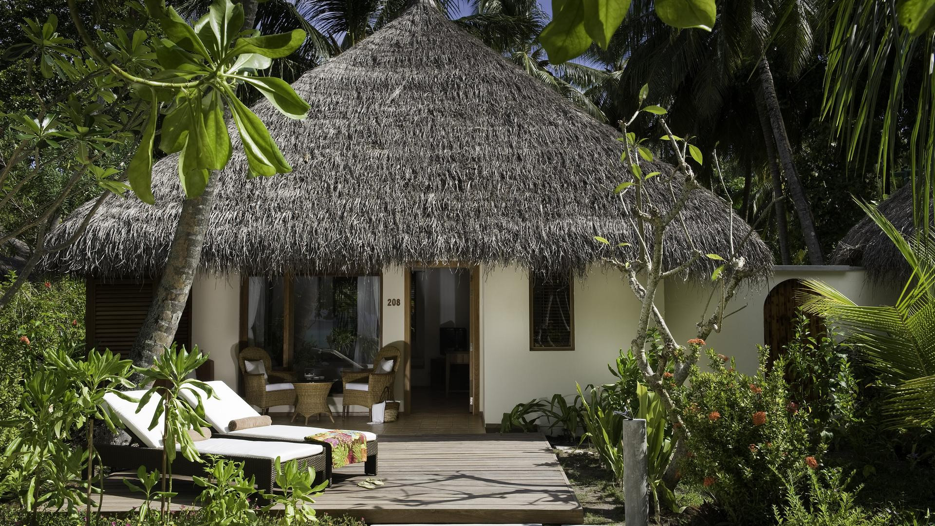 Garden Villa (DZX1), bungaló, nemdohányzó szoba, tenger felőli, lagúna felőli, kb. 45 m², összesen szobaszám ebben a szobatípusban: 1, elrendezése a következő: kombinált nappali/hálószoba, 1 king-size ágy, légterű légkondicionálás: ingyenes, egyénileg állítható , Padló: járólap, széf: ingyenes, mennyezeti ventilátor, íróasztal, kávé/teafőző, vízforraló, minibár: térítés ellenében, üdítők: térítés ellenében, all inclusive ellátással, víz: térítés ellenében, all inclusive ellátással, alkoholos italok: térítés ellenében, harapnivalók: térítés ellenében, minibár töltés, telefon, Internet: WLAN/WiFi: ingyenes, TV: síkképernyős, a hálószobában, Deutsche Welle, kábeltévé, DVD lejátszó, iPod dokkoló, takarítás: naponta, ingyenes, kültéri zuhanyzó, wc, fürdőköpeny: ingyenes, hajszárító, terasz nyugágyakkal, ülőgarnitúrával