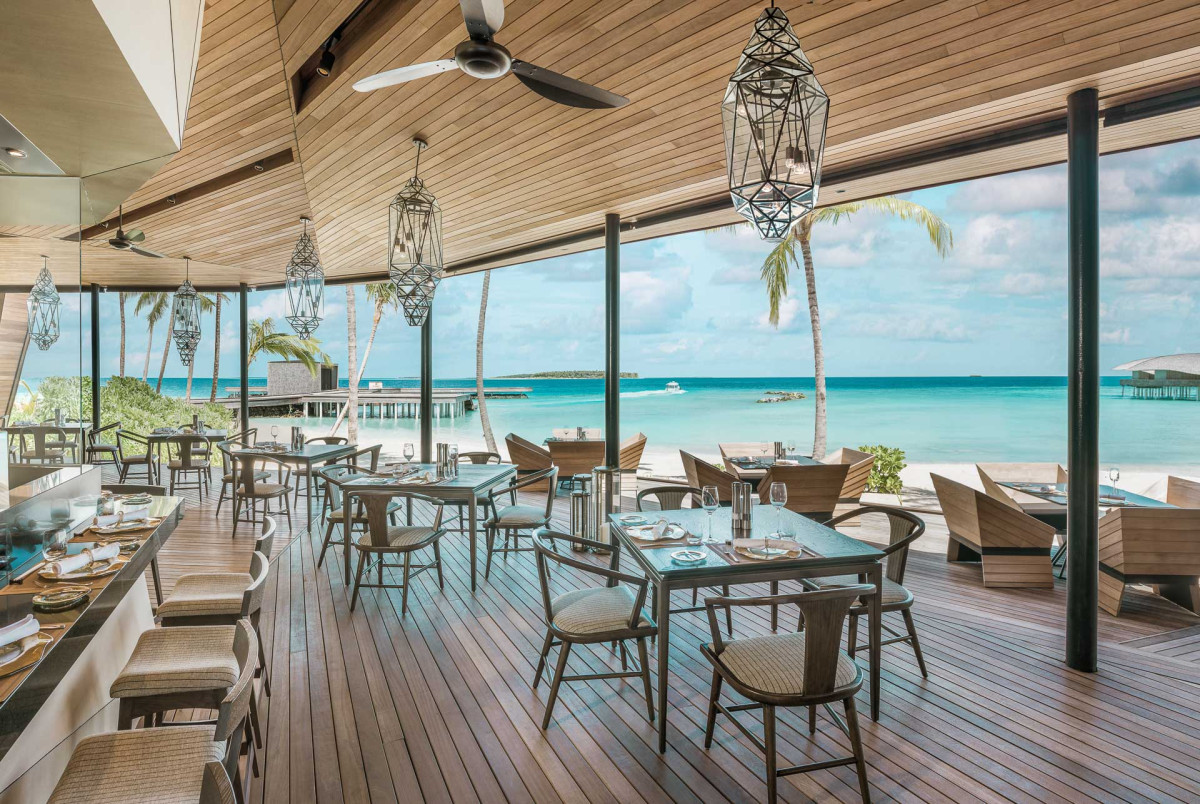 A fehér tölgy dekorációval büszkélkedő, fapadlós, oldalt nyitott gyönyörűen berendezett étterem csodálatos panorámát kínál a lagúnára. A hangulatot a kortárs fekete vascsillárok és romantikus süllyesztett világítás még különlegesebbé teszi.