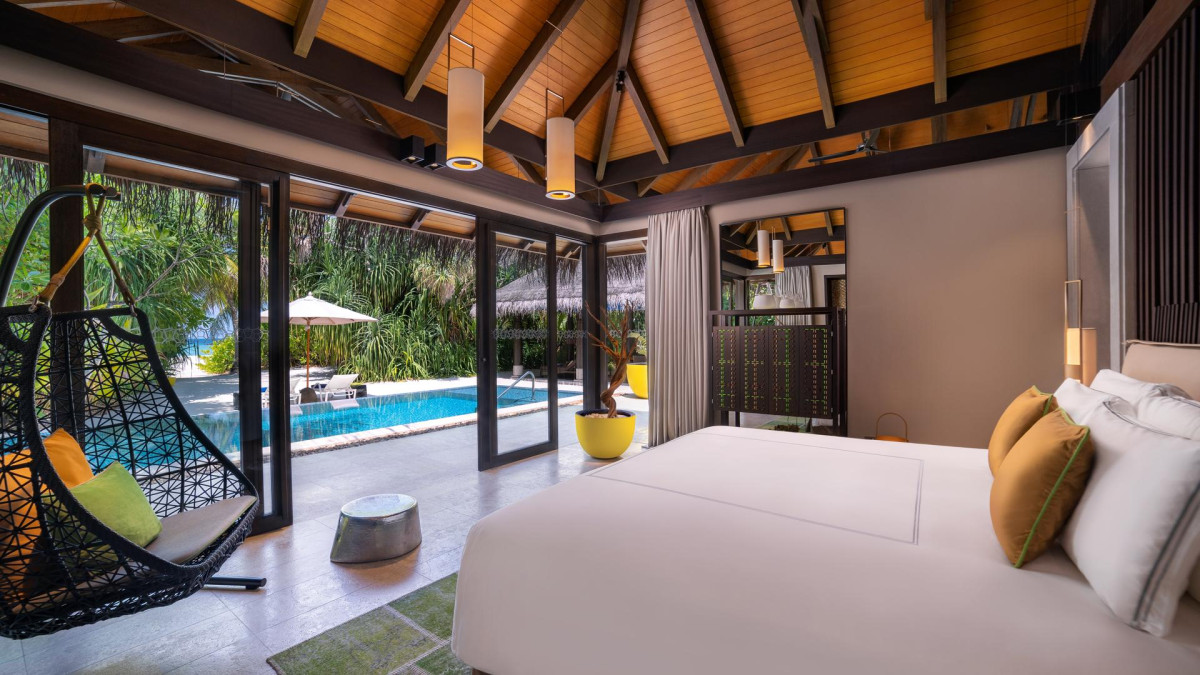 A 47 villa közvetlenül a tengerparton vagy a lagúna feletti cölöpöken található. A dizájn luxus és a természetes elemek pihentető légkört teremtenek. A tágas, félig nyitott fürdőszobában külön zuhanyzó és kád található és kanapé fürdőköpennyel, hajszárító, LCD TV, telefon, iPod dokkoló, WLAN (ingyenes), minibár, kávéfőző, széf és légkondicionáló. Rengeteg hely hozzá A gyönyörű szabadtéri terület saját medencével és félig nyitott medencével is kínál kikapcsolódást Nappali/étkező területek - mindegyik tengerre néző kilátással, részben növényzettel korlátozva. Beach Pool Villa (9) kb 287 nm (külső terület kb. 179 nm, medence kb. 28 nm): A legkisebb Lakóegység bőséges pihenőhellyel. Deluxe Beach Pool Villa (9) 313 nm (kb. 172 nm külterület, medence): Nagyvonalúbb kialakítású, belül egy további kis nappalival. Sunrise Water Pool Villa (8) kb 223 nm (kb. 105 nm külterület, kb. 24 nm medence): A napfelkelte oldalára a víz felett. Sunset Deluxe Water Pool Villa (8) kb 245 nm (külső terület kb. 114 nm, medence kb. 29 nm): Tágasabb és a naplemente felőli oldalon található. Beach Pool House (5) kb 581 nm (külső terület kb. 337 nm, medence kb. 55 nm): Két hálószoba, külön nappali, teljesen felszerelt konyha. Ocean Pool House (1) kb 500 nm (külső terület kb. 233 nm, medence kb. 37 nm): Mint a Beach Pool House, de cölöpökre épült a lagúna felett. Velaa Private Residences 4 hálószobával és egy egyedi Romantikus Pool Residence foglalható a tenger felett.
