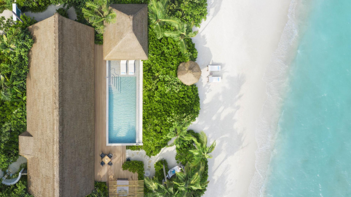 Reef Villa medencével kb. 279-286 nm: Földet és vizet köt össze, zölddel Előkert és terasz függőággyal a lagúna felett. 2 hálószobával is (kb. 600 nm) foglalható.