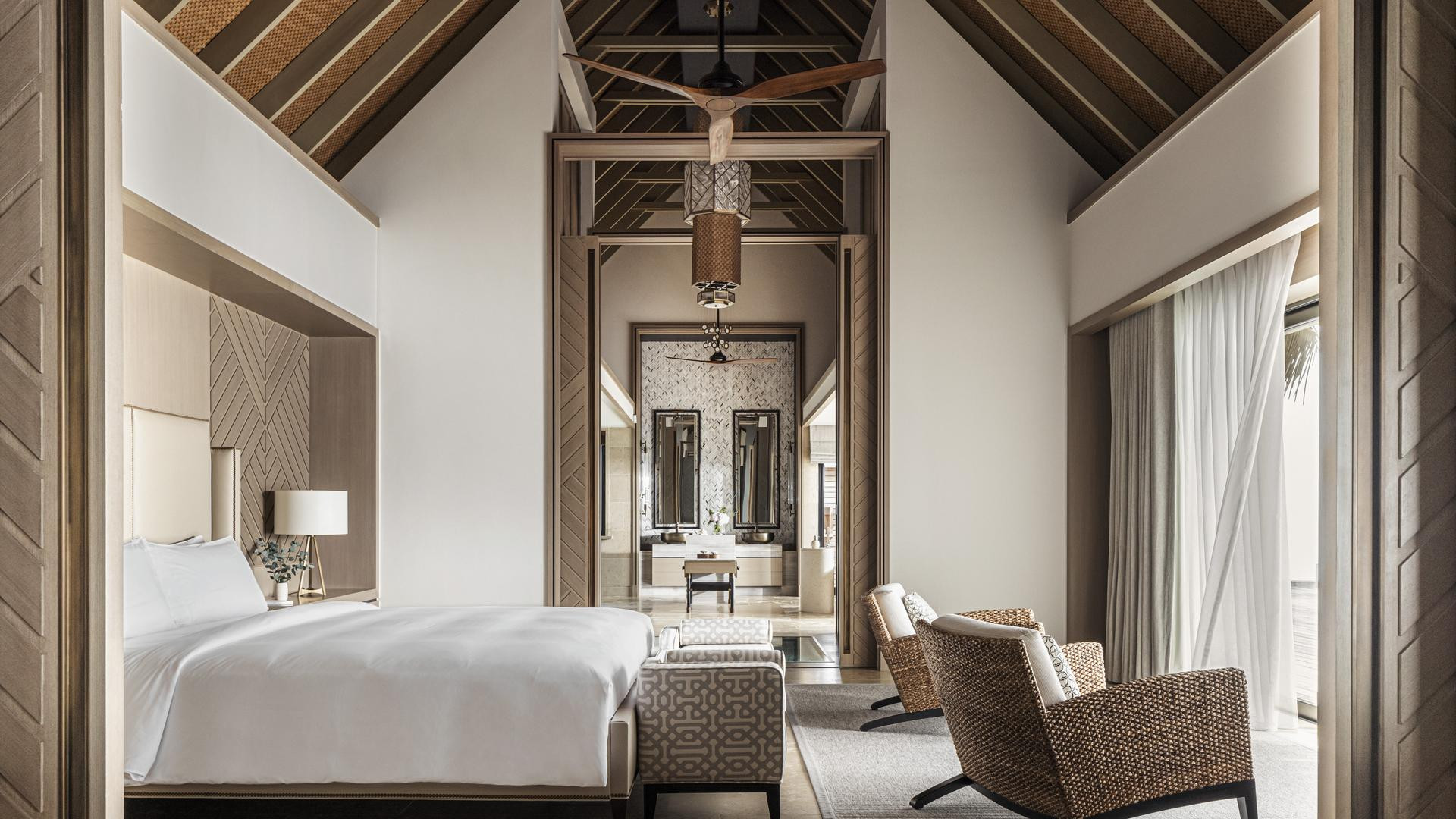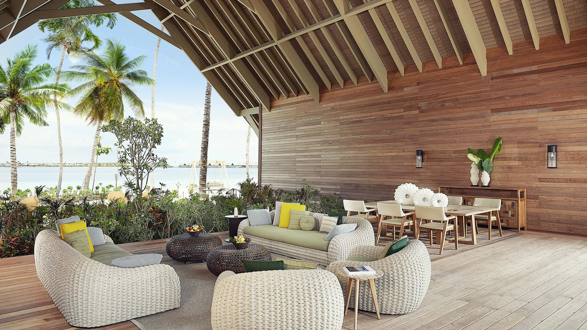 A 119 elegáns, tágas villa szárazföldön és víz felett élénk színekkel lett megtervezve A természetes tónusok és a minőségi fa kialakítása, a méltóságteljes berendezés ötvöződik kortárs dizájn és filigrán belső teakból és rattanból modernnel Kényelem intelligens technológiával. Minden villa tengerre néző kilátással rendelkezik fából készült napozóterasz lebegő heverővel, pavilonnal és saját fürdőszobával végtelenített medence.